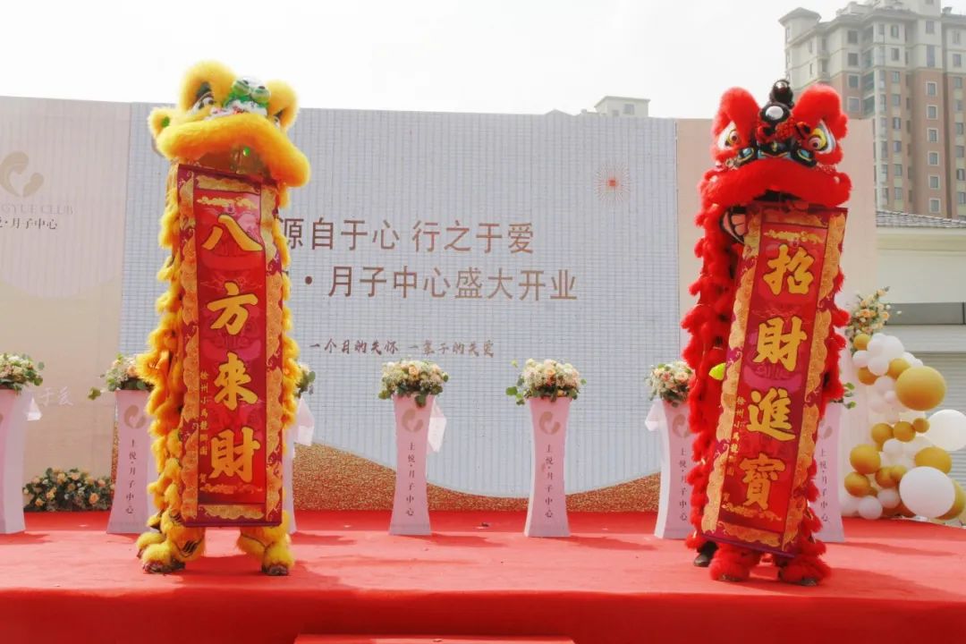 锣鼓阵阵送吉祥,瑞狮起舞好运至。鹏瑞集团杨董和市电视台胡台长为瑞狮妙笔点睛,唤醒的狮子登高采青,寓意着上悦·月子中心基业长青,生意兴隆。
